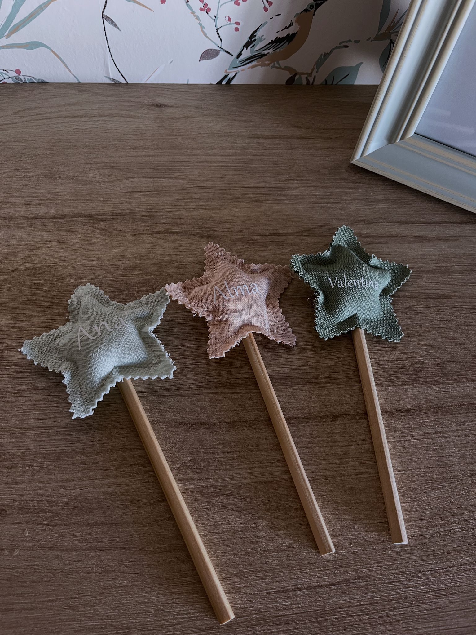 Lápiz de madera con estrella en tela personalizada.