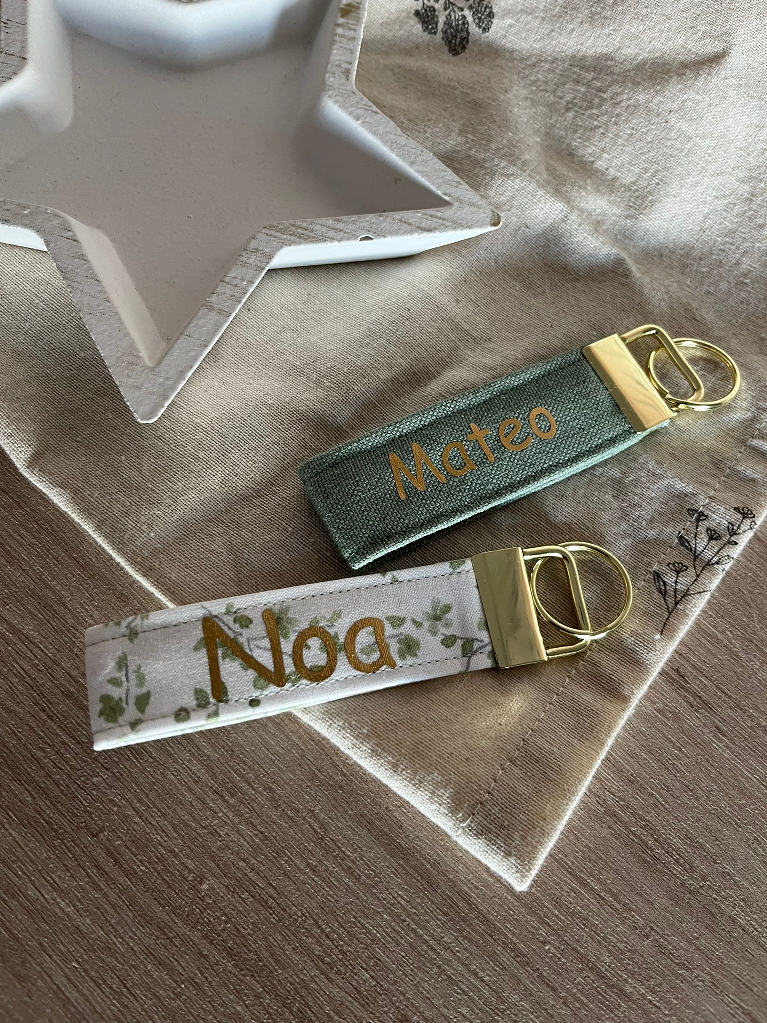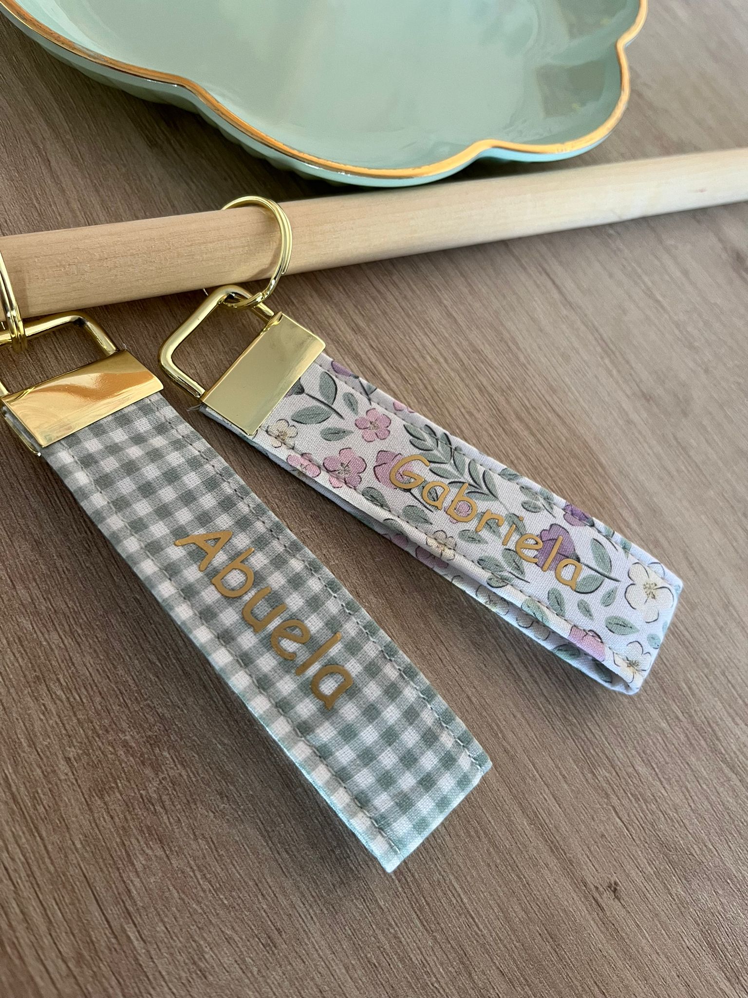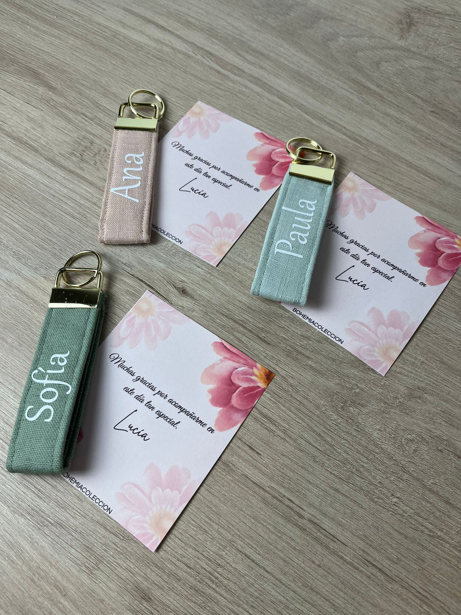 Llavero de tela personalizado para vuestros invitados, acompáñalo de una tarjeta personalizada y bolsita de celofán.